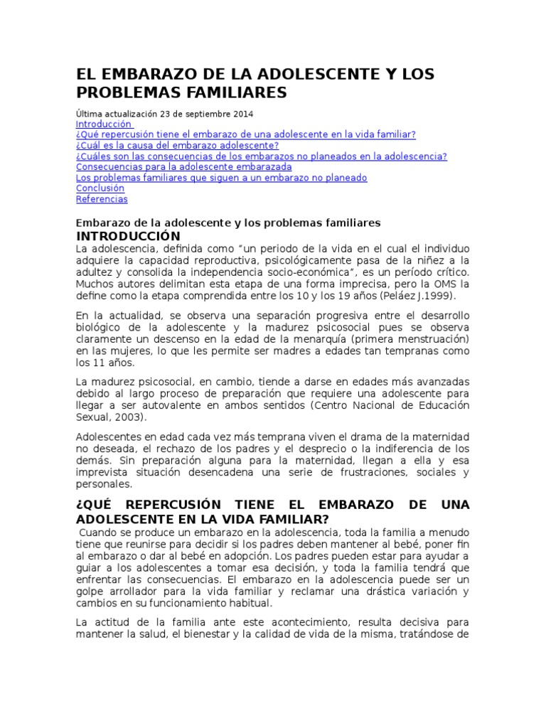 El Embarazo De La Adolescente Y Los Problemas Familiares